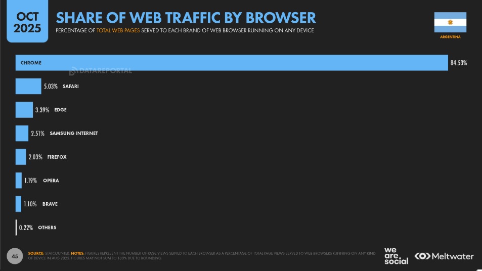 El navegador Chrome domina el mercado ampliamente.