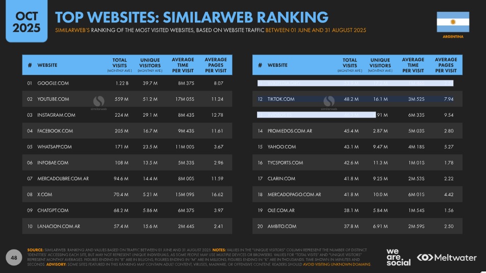 Dentro de los sitios más buscados se destacan portales de noticias como Infobae, La Nación, Clarín, Olé y Ámbito.