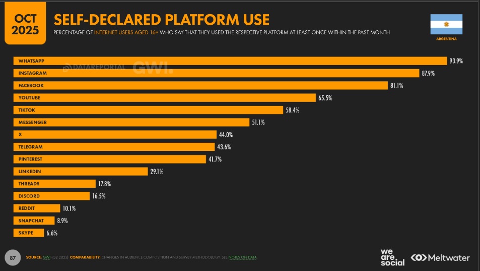 Las redes más usadas son Whatsapp, Instagram y Facebook, todas de Meta.