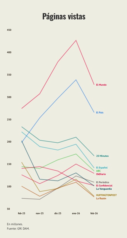 Habrá que seguir si esto es una tendencia creciente o es un fenómeno pasajero. Aún no hay datos sobre el posible impacto en los ingresos publicitarios y las sucripciones. Por lo pronto, el sitio más visto de España es El Mundo seguido por El País. Luego, a mucha distancia, le siguen 20 minutos, El Español, ABC y OkDiario.