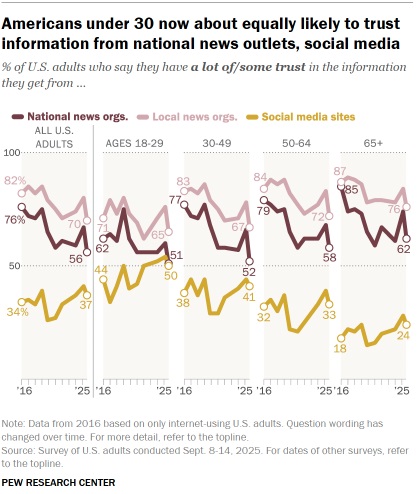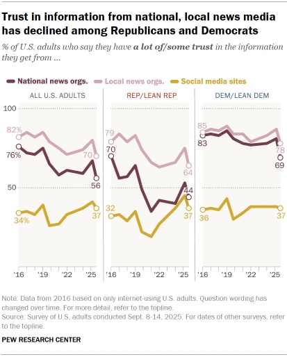 Los estadounidenses, y no es novedad, tienen menos confianza en las noticias. Según un estudio del Pew Research Center la caída de confianza sigue siendo la norma en los públicos. Al dividirlos ideológicamente, los simpatizantes del Partido Republicano tienen menos confianza que aquellos que están cercanos al Partido Demócrata.