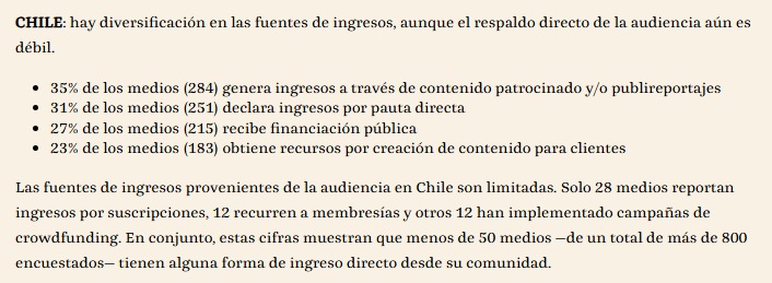 Al igual que otros casos de la región, el financiamiento vía las audiencias es limitado.