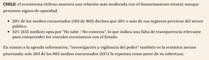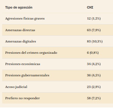 En cuanto a las amenazas a medios y periodistas, el caso chileno lo ubica entre los más favorables para la actividad periodística en la región.
