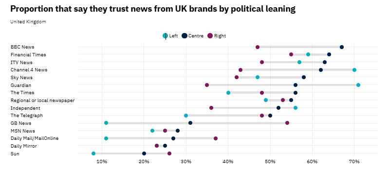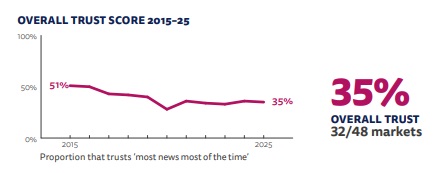 El nivel de confianza en las noticias en el Reino Unido es del 35%.